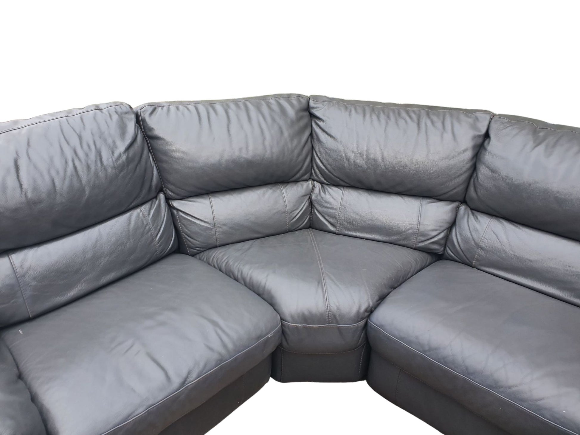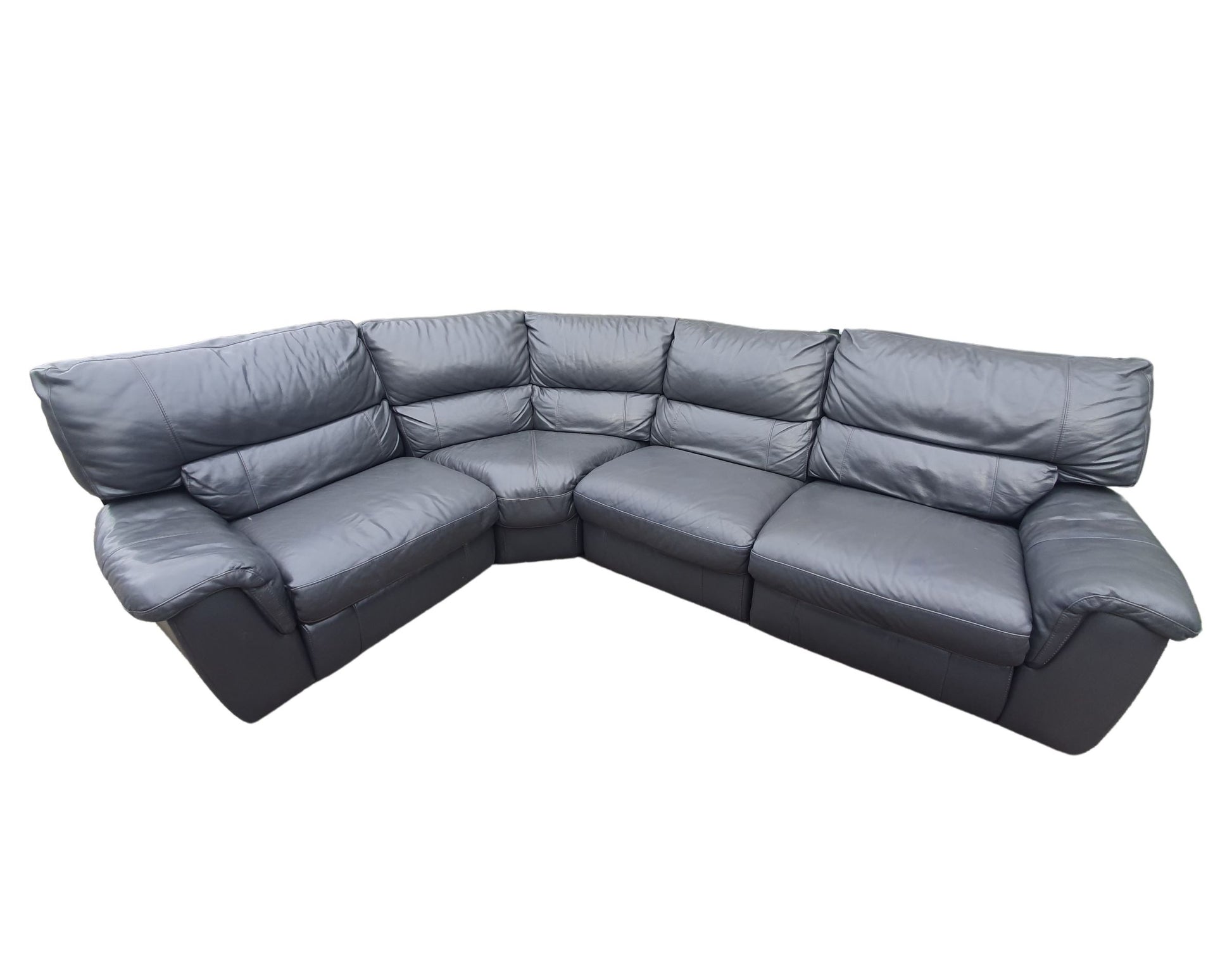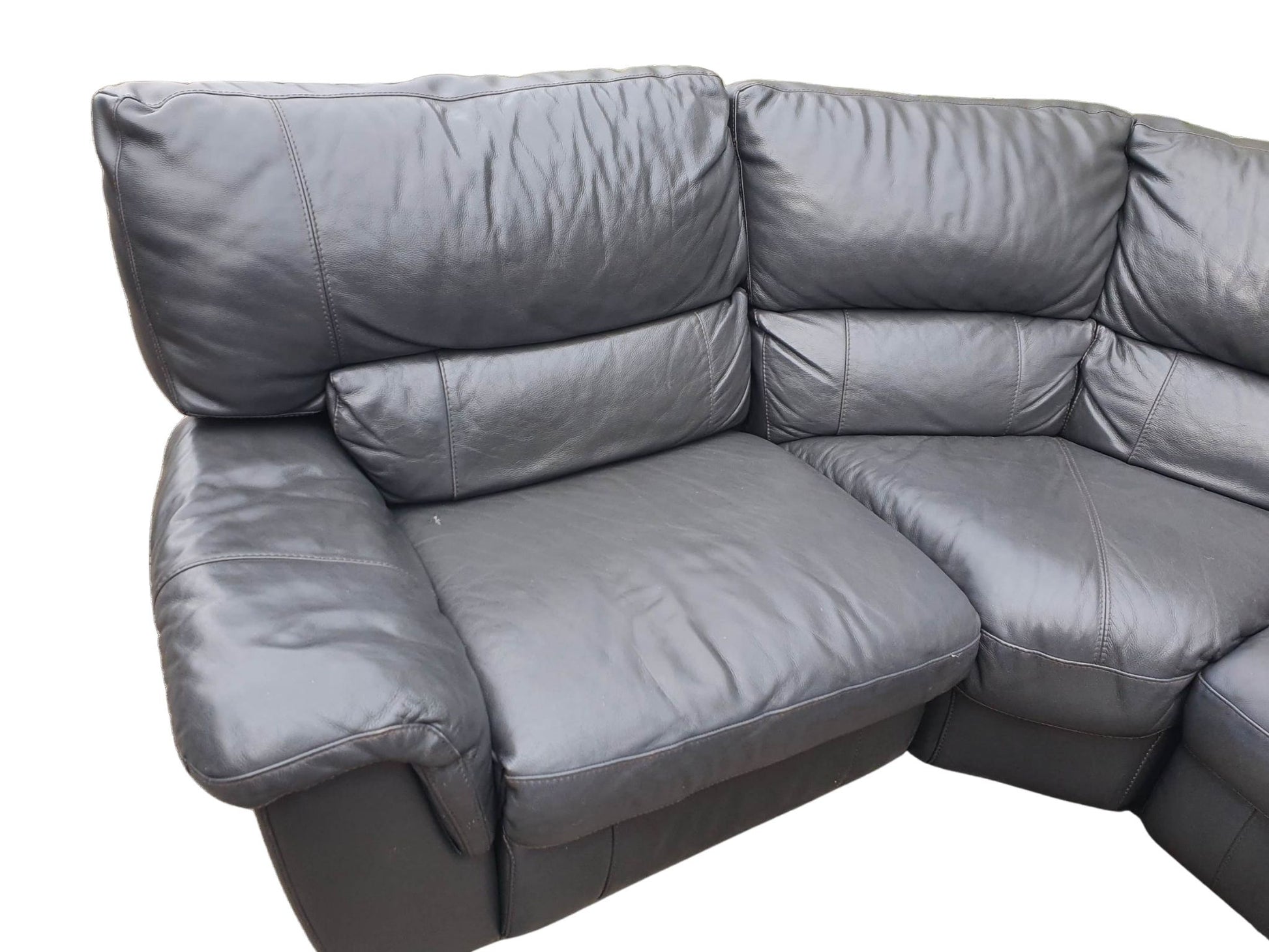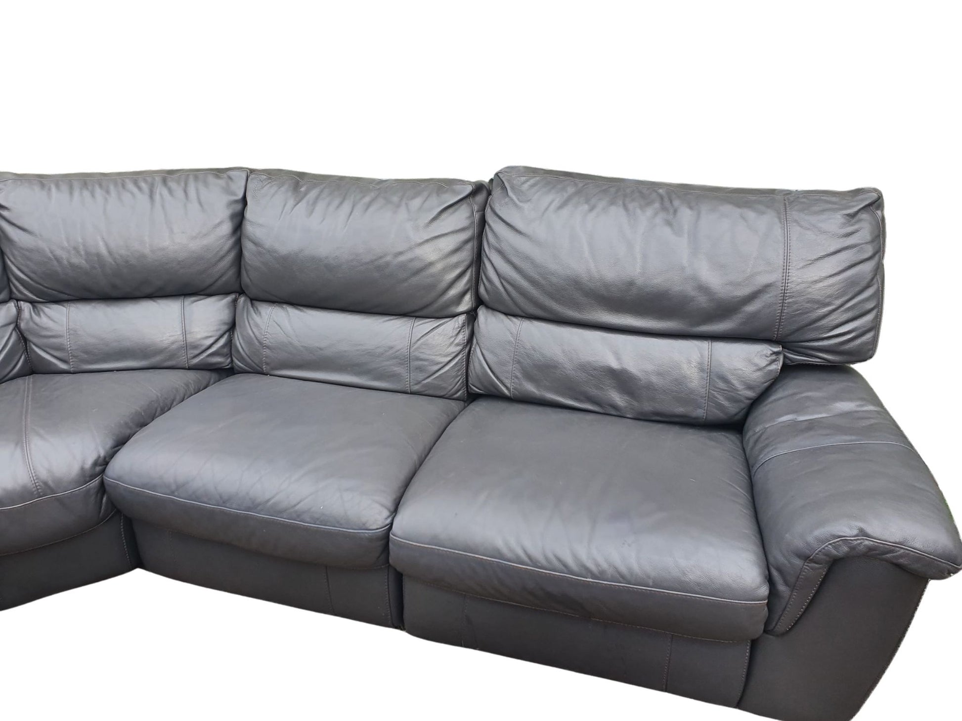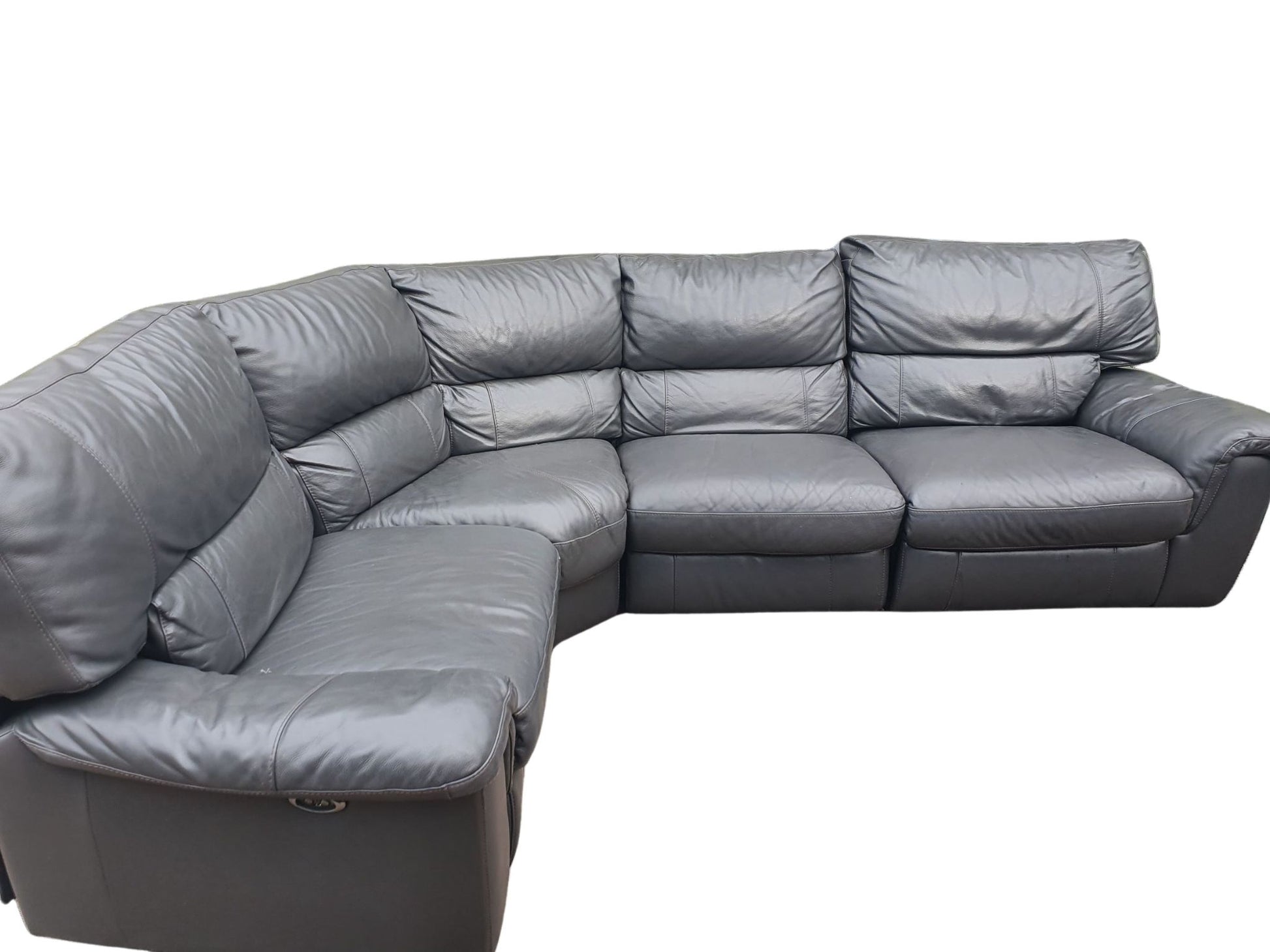 Real Leather Dark Grey Corner Sofa with 2 electrical Recliners effortlessly combines style and comfort. Its reclining feature adds a touch of luxury to any space, making it perfect for lounging and entertaining. Upgrade your living room with this durable and sleek piece, measuring 225cm x 300cm. It comes apart in 4 pieces for easy transportation.