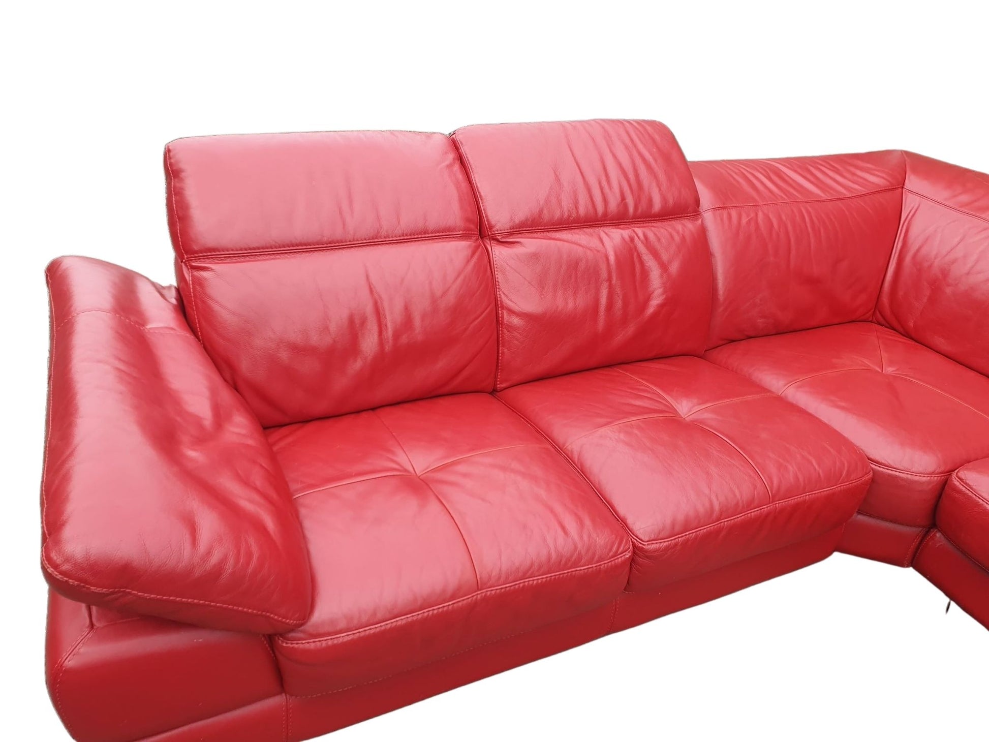 Elevate your living space with our Real Leather L Shape Furniture Village in great codition. Made with high-quality, genuine leather in a gorgeous coral colour, this piece measures 275 cm on the left side and 240 cm on the right. Includes 2 parts and comfortable headrests, making it perfect for relaxing. Delivery option available. Contact 07490083958.